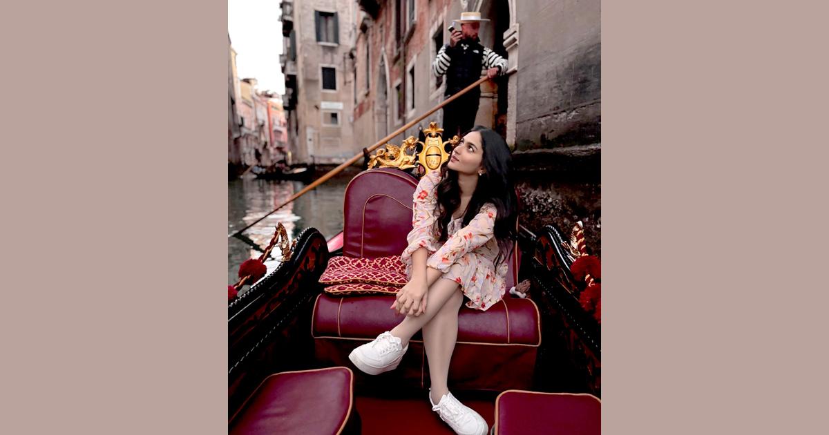 IMAGE: In her delightful pink floral printed dress, Kayadu Lohar is set to charm Venice. All photographs: Kind courtesy Kayadu Lohar/Instagram