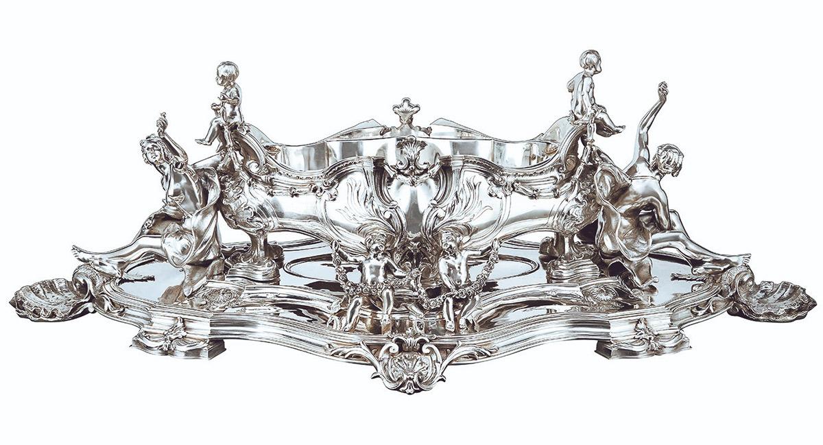 A Rococo-inspired centrepiece with cherubs and other motifs