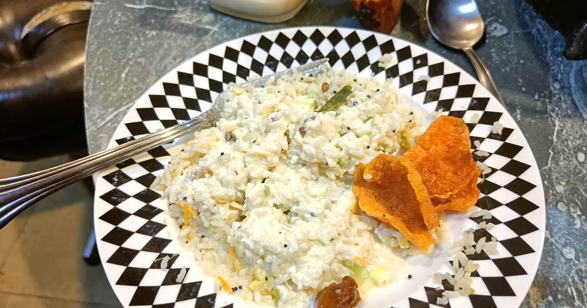 Curd rice pairs well with fried up spiced dried prawns, fried fresh fish and eggplant curries like a gotsu.