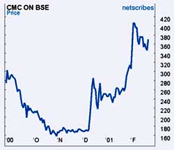He expected the scrip to rise further for some time. Though the analyst didn't want to put a finger on the exact quantum, he said it would rise by about another 5-10 per cent. Analysts are, however, treading with caution over the CMC scrip. Repeated news of divestment has raised investor hopes time and again and the market seems to be in a state of confusion. "Unless it is clear who the buyer is and till it is decided, I would remain cautious," said the analyst. "Lots has already been lost due to false information and expectations for some time now. The best idea would be to wait and watch," he said. "CMC is traditionally not into very high-end services. It typically undertakes maintenance and training activities, for which it's not getting a very high valuation. The scrip, though on the up now, is echoing the same sentiment," said a senior analyst from Pranav Securities. Analysts are also concerned over the company's low margins as compared to other technology companies. Also, its high exposure to the domestic market and lack of marketing initiatives, unlike its peers, is a cause for concern. The government said earlier this month it planned to reduce its stake in CMC Ltd to 26 per cent, from its current holding of over 80 per cent.