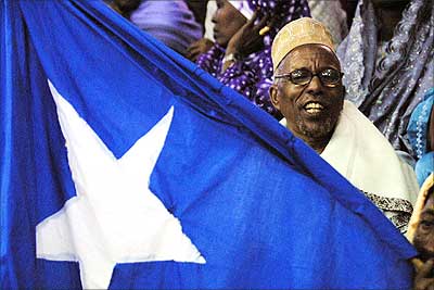Image: A Somali waves his national flag as voting takes place for presidential elections in Nairobi. Photograph: Simon Maina/AFP/Getty Images