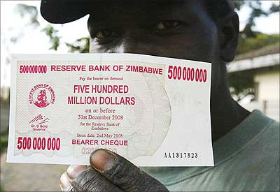 Almost 80% of the nation is unemployed. The Zimbabwean central bank has introduced $500 million bearer cheques (or currency notes) for the public, and $5 billion, $25 billion, $50 billion agro-cheques for farmers. Just last fortnight the nation had introduced $250 million bearer cheques.