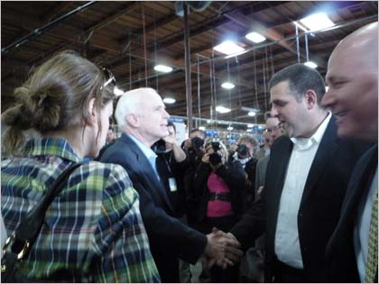 Image: Republican presidential nominee John McCain speaking with Silicon Valley CEOs.