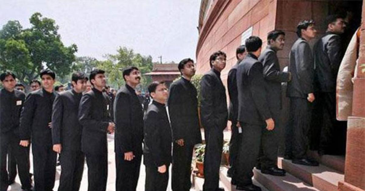 Image: IAS trainees are seen entering the Parliament House. Photograph: PTI Photo.