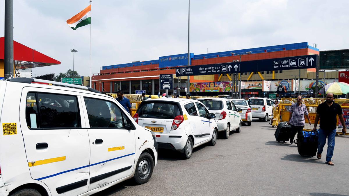 IMAGE: Uber Taxis line up outside the New Delhi railway station. Photograph: R Raveendran/ANI Photo