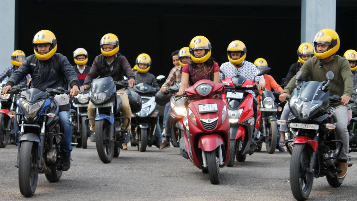 IMAGE: Rapido Bike Taxi flags off services at the State Convention Centre in Shillong, Meghalaya. Photograph: ANI Photo