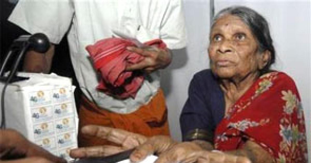 Image: A villager goes through the process of a fingerprint scanner during UID database system in the Pathancheru village, in Medak district of Andhra Pradesh. | Photograph: Krishnendu Halder/Reuters