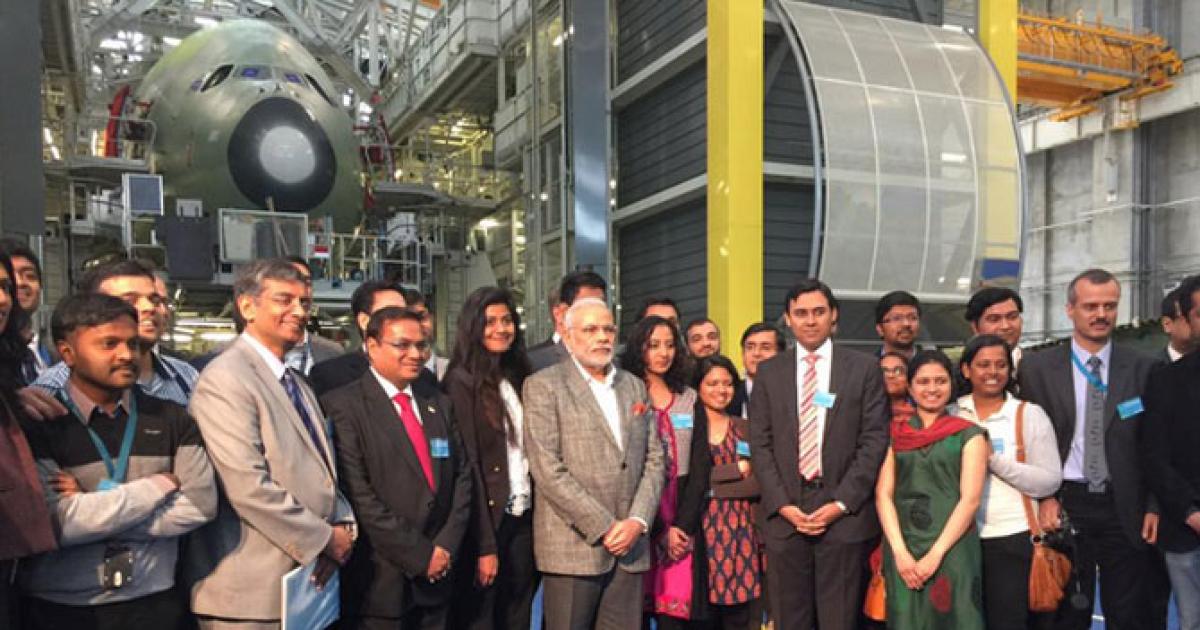 Prime Minister Modi was given a tour of the Airbus A380 final assembly line. Currently, four A380 flights serve India daily.