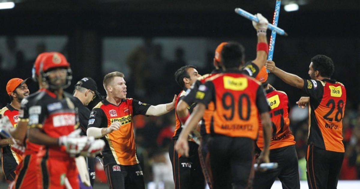 IMAGE: Sunrisers Hyderabad Captain David Warner, centre, celebrates with team-mates after winning IPL 2016. Photograph: BCCI