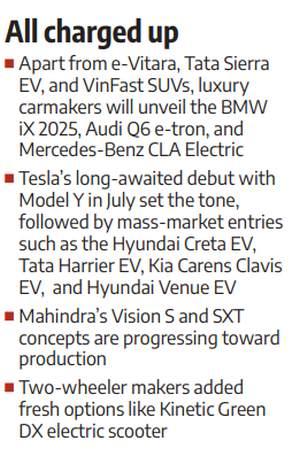 Tesla's long-awaited debut with Model Y in July set the tone, followed by mass-market entries such as the Hyundai Creta EV, Tata Harrier EV, Kia Carens Clavis EV, Hyundai Venue EV, and Mahindra's BE 6 and XEV 9E.