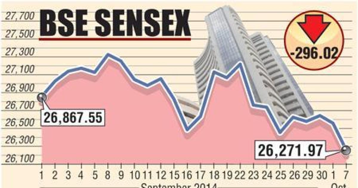 After opening 137 points lower, the 30-share index continued its slide to touch the day's low of 26,250.24 before ending the day at almost two-month low of 26,271.97, a level not seen since August 14, registering a steep fall of 296.02 points or 1.11