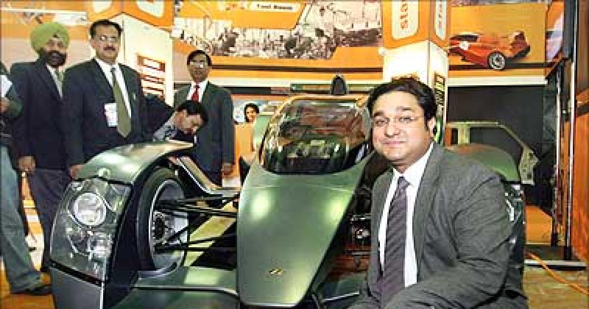 Aangad Paul, chief executive officer of Caparo Group sits next to Caparo T1. PTI Photo by Atul Yadav