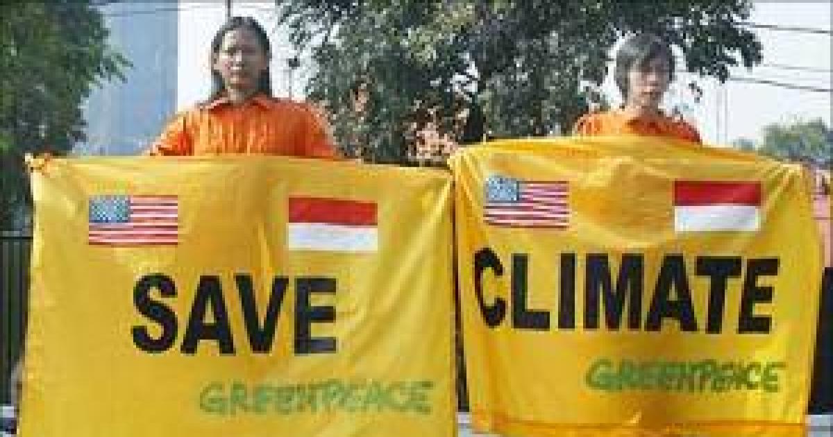 Image: Greenpeace activists hold banners. | Photograph: Reuters