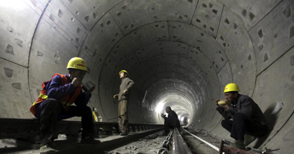 Image: Labourers eat their meals inside a subway tunnel that is under construction in Wuhan, Hubei province,
