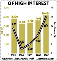 In fact, even after paying your equated monthly instalments for over two years, it may be that your loan tenure is longer than when you first took it. Confused? And, on top of all this your new neighbour, who bought his house in late 2007, pays a much lower interest rate-from the same bank, for a similar house. How can that be?