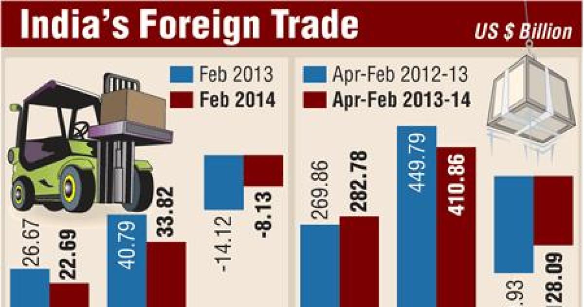 ExportIndia's exports declined 3.67 per cent to $25.68 billion in February.