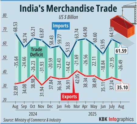 The commerce ministry data showed non-petroleum, non-gems and jewellery (gold, silver and precious metals) imports in August 2025 were $41.02 billion compared to $41.41 billion in August 2024.