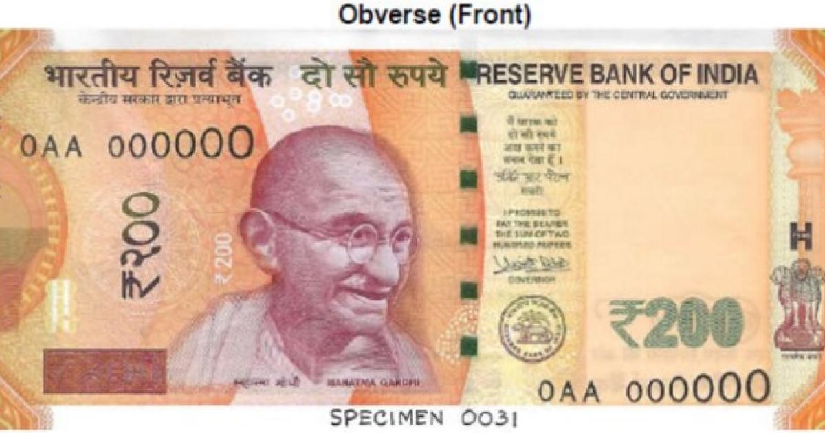 Among other prominent features, the banknote will carry a portrait of Mahatma Gandhi at the centre and the denominational numeral "200" with rupee symbol in colour changing ink -- green to blue -- on the bottom right on the obverse (front) side of the note, RBI said.