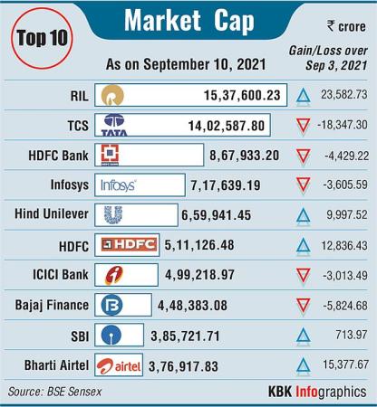 In the ranking of top-10 firms, Reliance Industries Limited was leading the chart followed by Tata Consultancy Services, HDFC Bank, Infosys, Hindustan Unilever Limited, HDFC, ICICI Bank, Bajaj Finance, State Bank of India and Bharti Airtel.