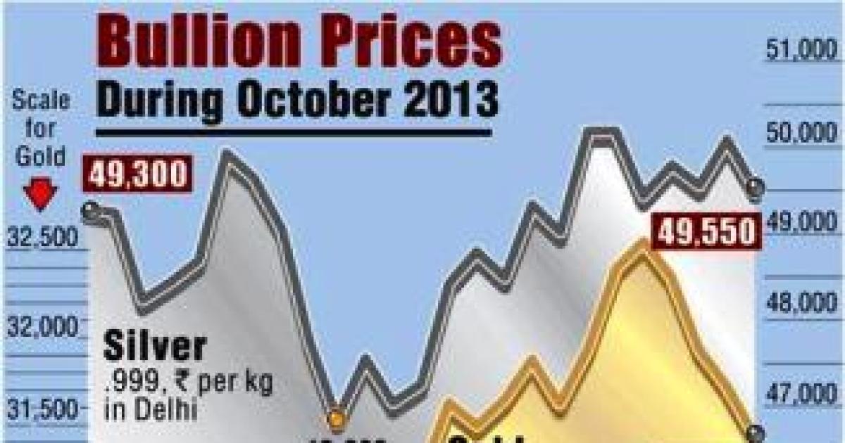 Silver also fell by Rs 550 to Rs 49,550 per kg on lack of buying support from industrial units and coin manufacturers at prevailing higher levels.