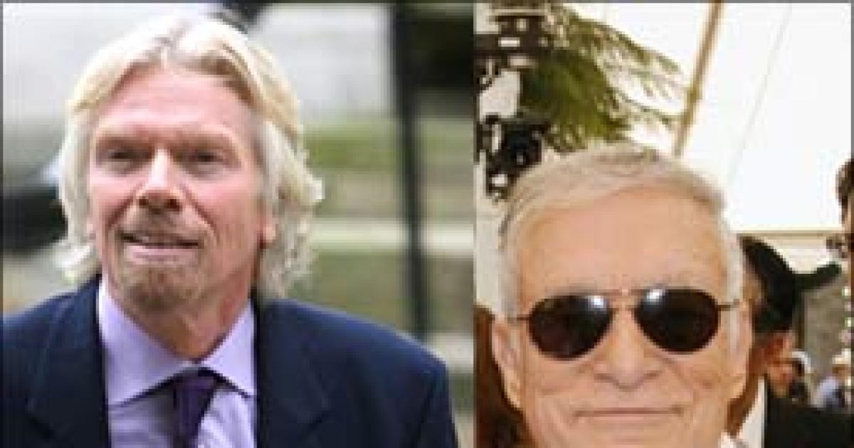 (Left) Virgin boss Richard Branson. Photograph: Lewis Whyld/Reuters | (Right) Playboy founder Hugh Hefner. Photograph: Fred Prouser/Reuters