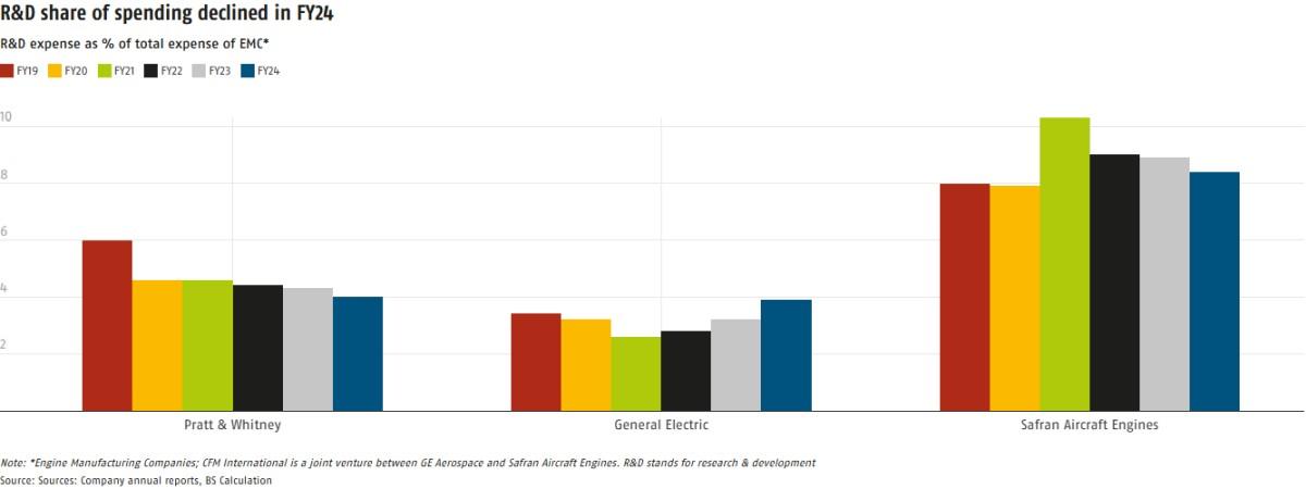 Two of the three largest engine manufacturing companies recorded a decline in the share of research & development expenditure in total expenses in FY24. (Chart 4)