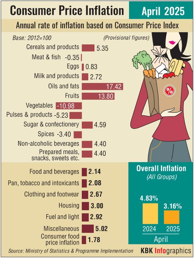 The rural inflation was at 2.92 per cent in April 2025 compared to 3.25 per cent in the preceding month 2025.