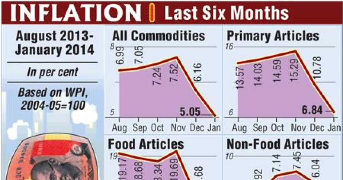 InflationWholesale inflation eased to a seven-month low of 5.05 per cent in January, on decline in the rate of price rise in food articles, mainly vegetables.