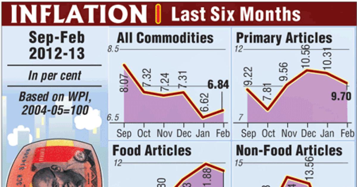The wholesale price index, the main inflation indicator, rose an annual 6.84 per cent in February, higher than the 6.54 per cent rise estimated by analysts.