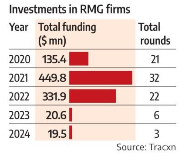 It went on to secure $332 million across 22 rounds in 2022, before plummeting to $20.6 million in six rounds in 2023 and $19.5 million in just three rounds in 2024, according to Tracxn.