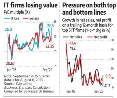 Top information-technology services companies continue to lose ground on the bourses as investors turn away from them owing to an earnings slowdown and threat from artificial intelligence.