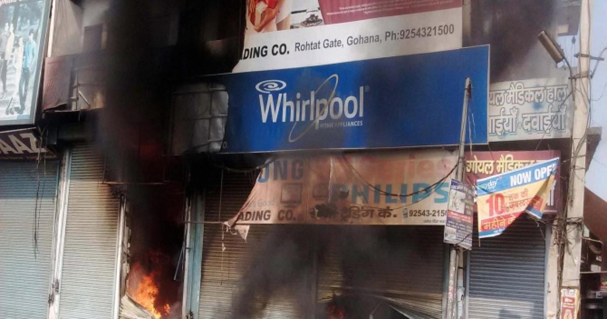 Image: Shops set on fire as the Jat agitation for reservation intensifies in Sonipat. Photograph: PTI
