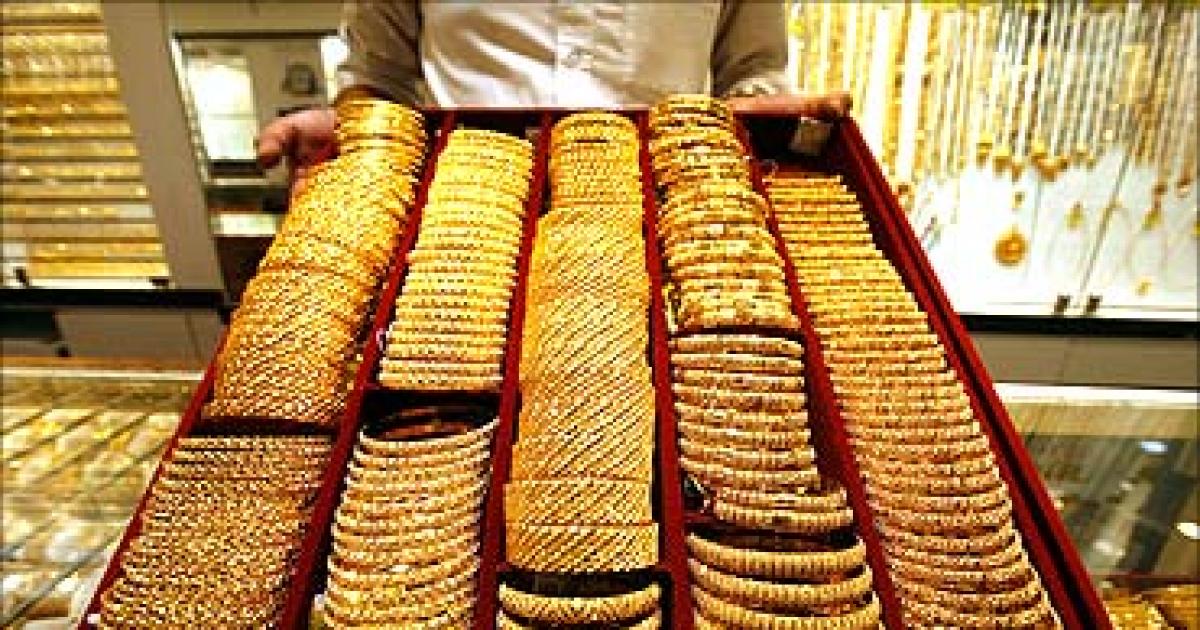 Image: A salesman displays a tray of gold bangles. Photograph: Vivek Prakash/Reuters