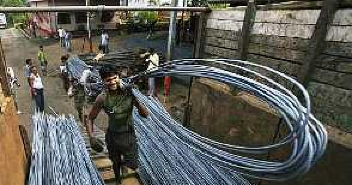 Image: Labourers load iron rods onto a vehicle at a steel factory on the outskirts of Agartala. Photo is for representation purpose only. | Photograph: Jayanta Dey/Reuters