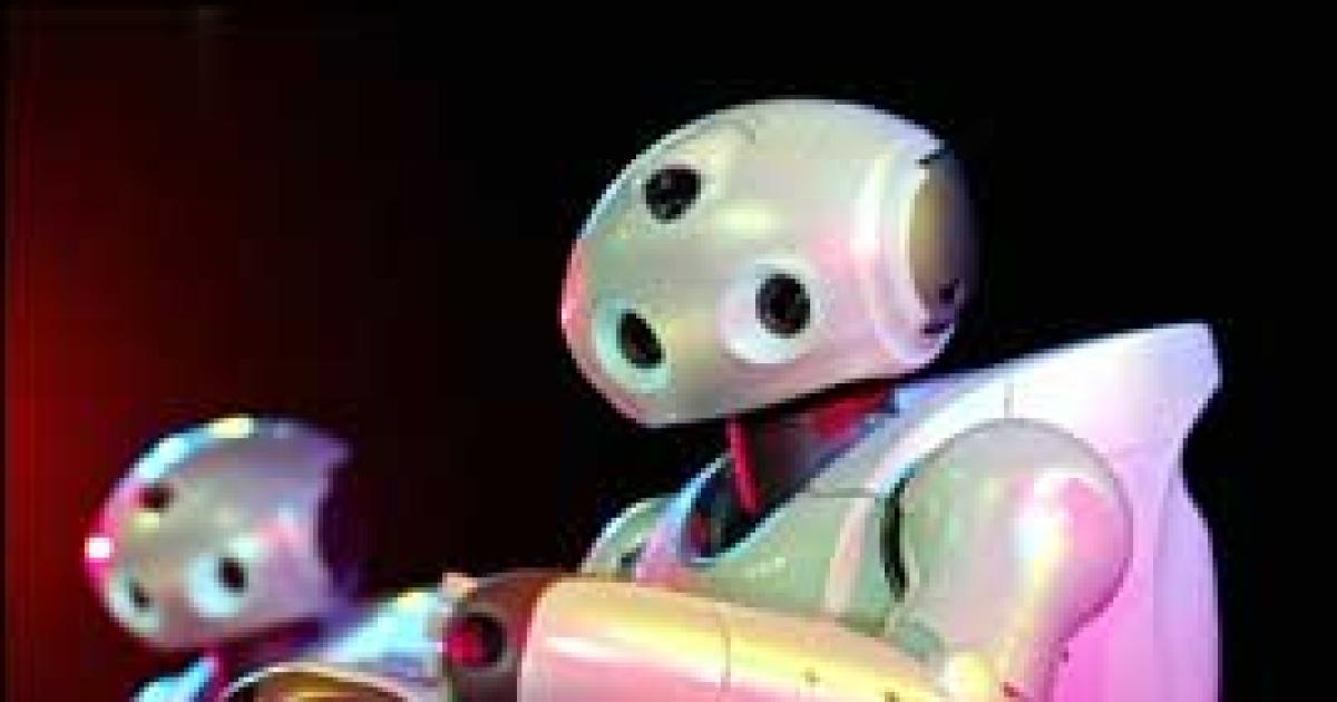 'Qrio' entertainment robots from Japanese electronics giant Sony, give a dance performance on stage at the Sony showroom in Tokyo. Sony's humanoid robots, 58 cm in height and weighing 7 kg, have three CPUs and 38 micro actuators to help them move smoothly. Photo: Yoshikazu Tsuno/AFP/Getty Images
