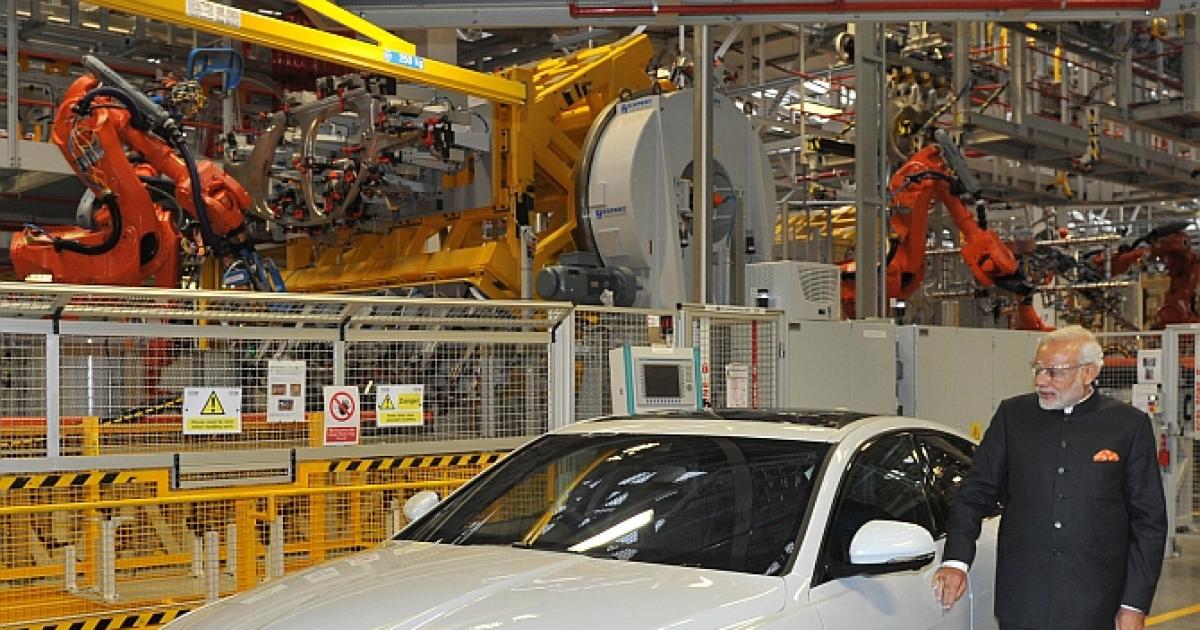 Modi, who has been driven around in a Jaguar for most of his three-day visit to the United Kingdom, was given a tour of the new state-of-the-art production facility for the new Jaguar XE sports saloon.