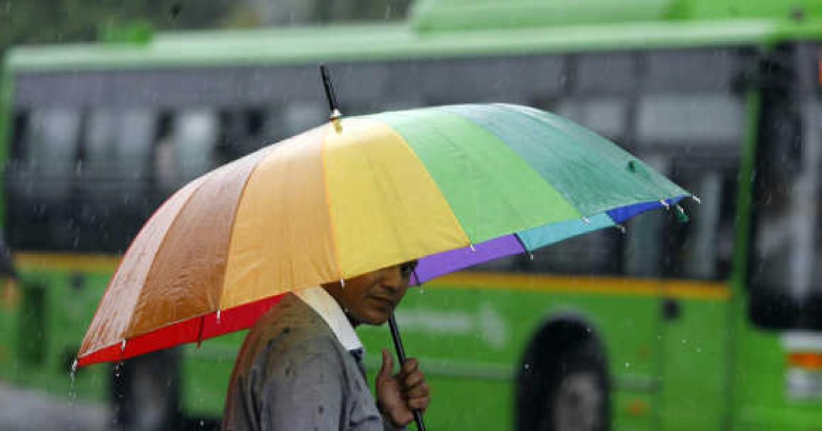 Image: A man holds his umbrella as he crosses a road during rains in New Delhi. A file photo. Photograph: Mukesh Gupta/Reuters