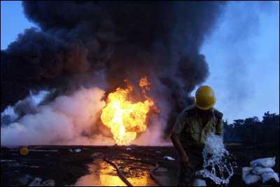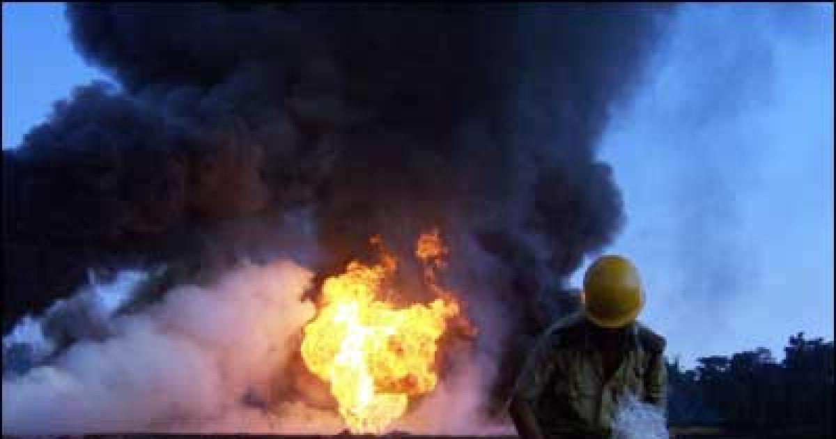 The sky in the area was black with thick smoke, ashes and debris scattered everywhere with a film of crude oil covering the ground, they said, adding that the roar of the flames could be heard and the blaze seen from several kilometres.