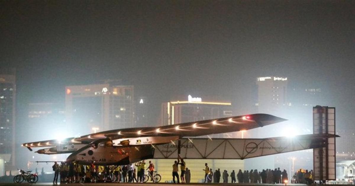 The plane, Solar Impulse 2, touched down in the United Arab Emirates capital at 0005 GMT (0405 local time) on Tuesday.