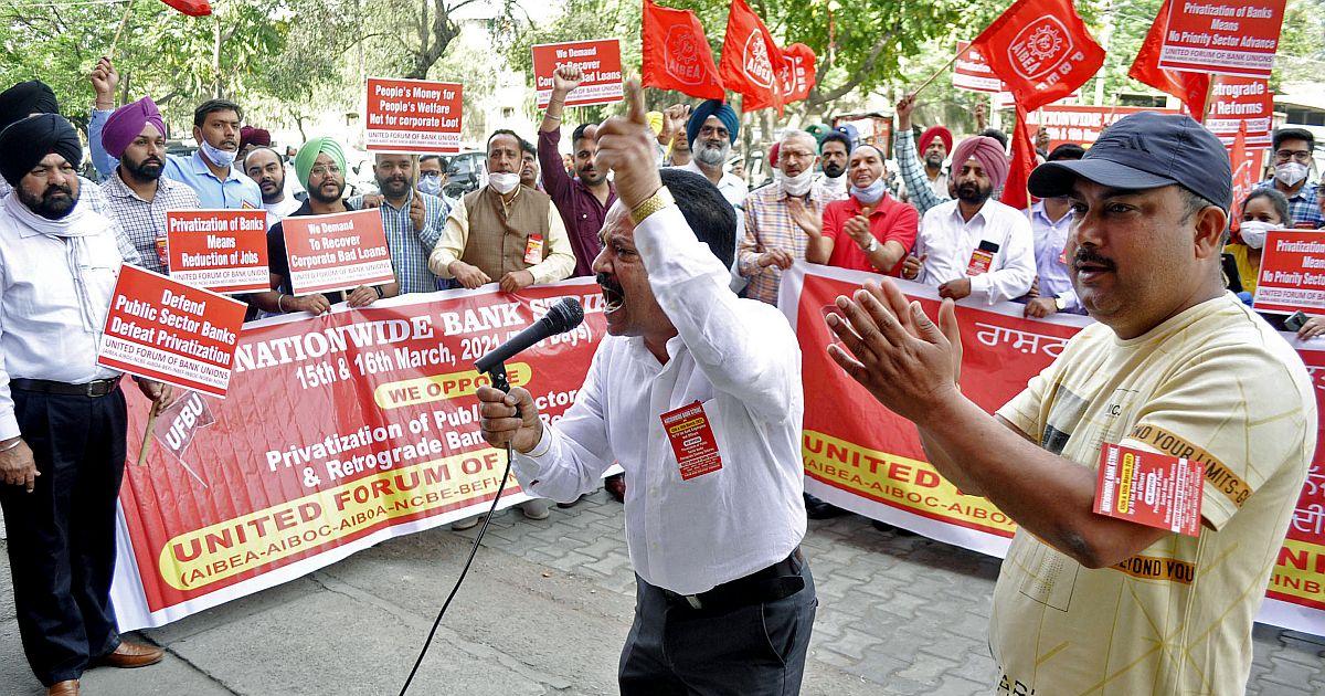 The strike has been called against the government's decision to privatise state-owned lenders.