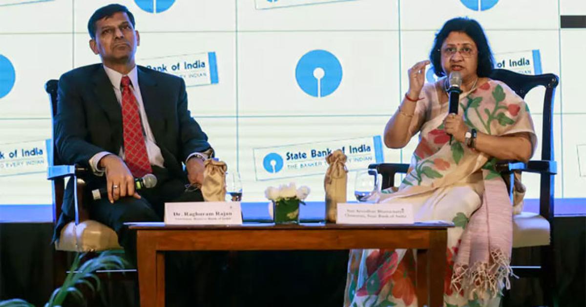 Image: RBI Governor Raghuram Rajan (left) and Arundhati Bhattacharya, chief of SBI. Photograph: Reuters.