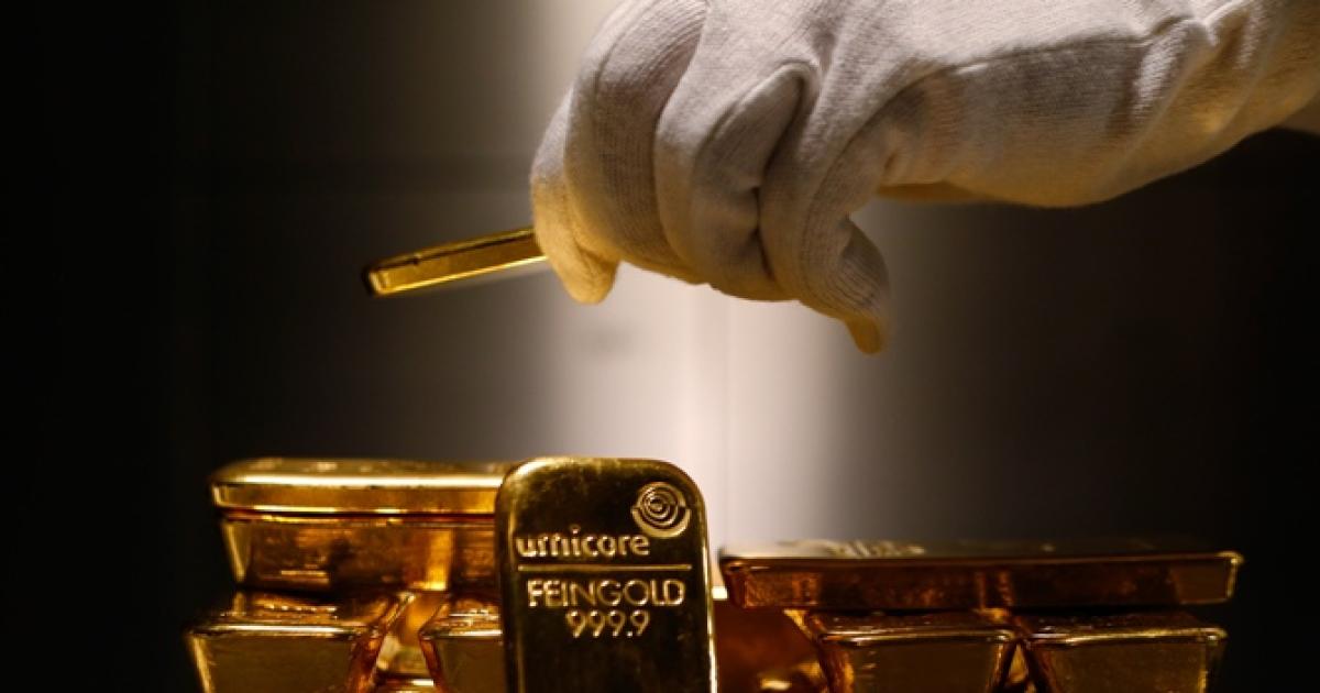 Image: Gold bars are stacked in the safe deposit boxes. Photograph: Michael Dalder/Reuters