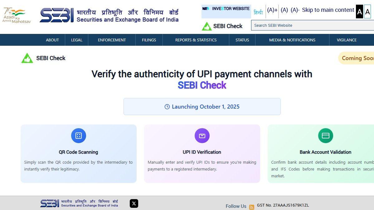 In June, Sebi mandated a new UPI format with the suffix '@valid' for all registered intermediaries to prevent fraud and impersonation. The initiative is aimed at ensuring that investors transfer funds only to authorised entities, since banks will issue the handles exclusively to intermediaries verified on Sebi's system.