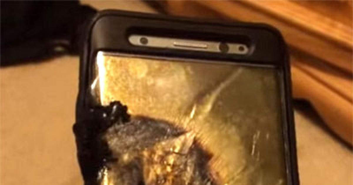 Image: A charred Samsung Galaxy Note 7. Photograph, courtesy: Ariel Gonzalez/YouTube