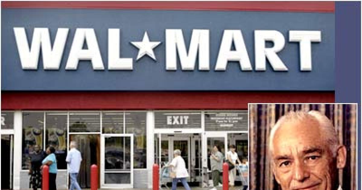 Photograph shows a Wal-Mart store in Riverside, Illinois, USA. (Inset) Wal-Mart founder Sam Walton.