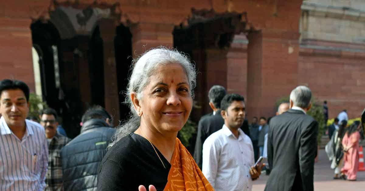IMAGE: Finance Minister Nirmala Sitharaman at Parliament House, December 5, 2023. Photograph: Rahul Singh/ANI Photo