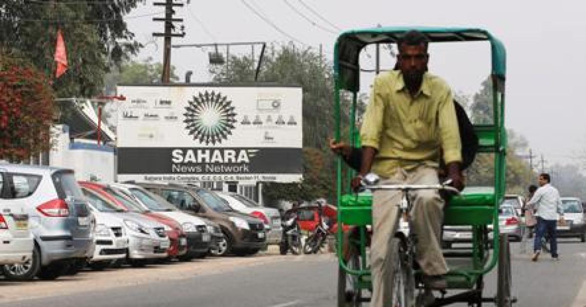 Image: A man pedals his rickshaw past Sahara India Complex building in Noida on the outskirts of New Delhi. Adnan Abidi/Files/Reuters