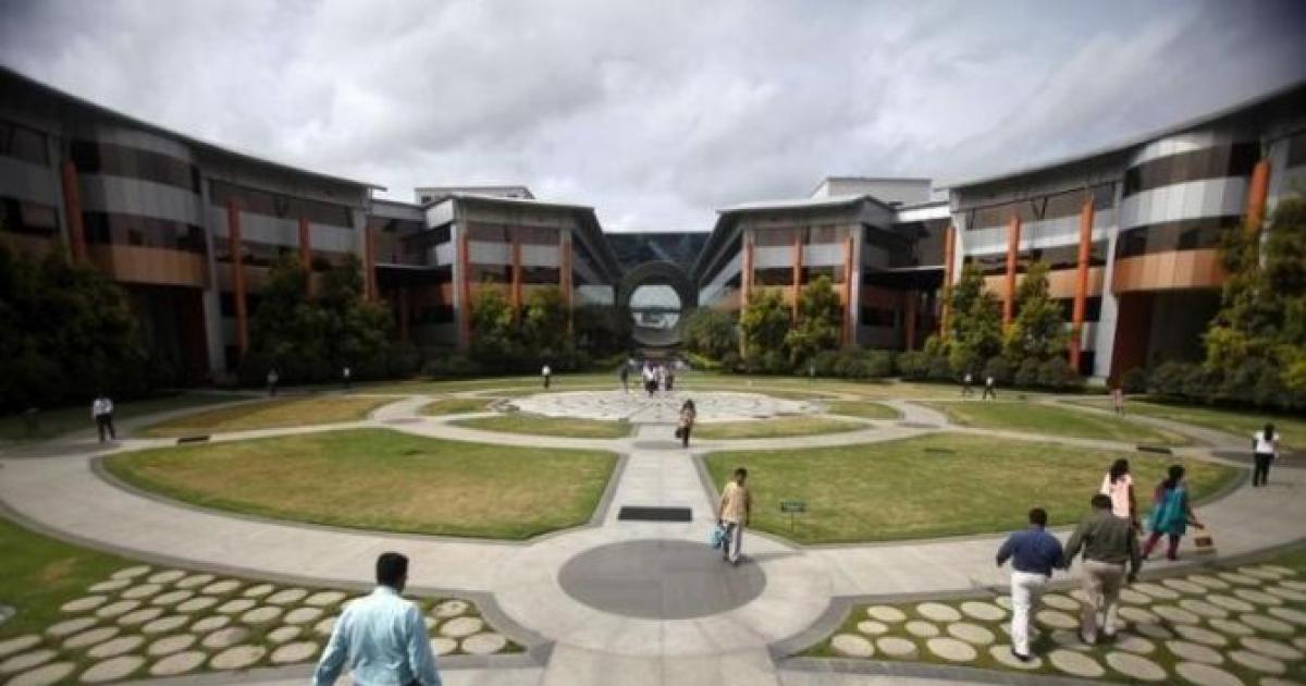 Image: Employees walk in a forecourt at the Infosys campus in the Electronic City of Bengaluru. Photograph: Vivek Prakash/Reuters