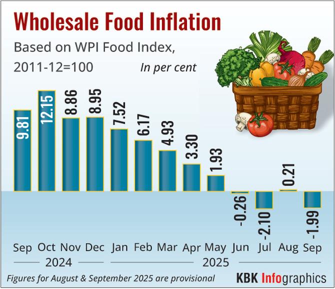 According to WPI data, deflation in food articles was 5.22 per cent in September, compared to 3.06 per cent in August, with vegetables experiencing a decline in prices.