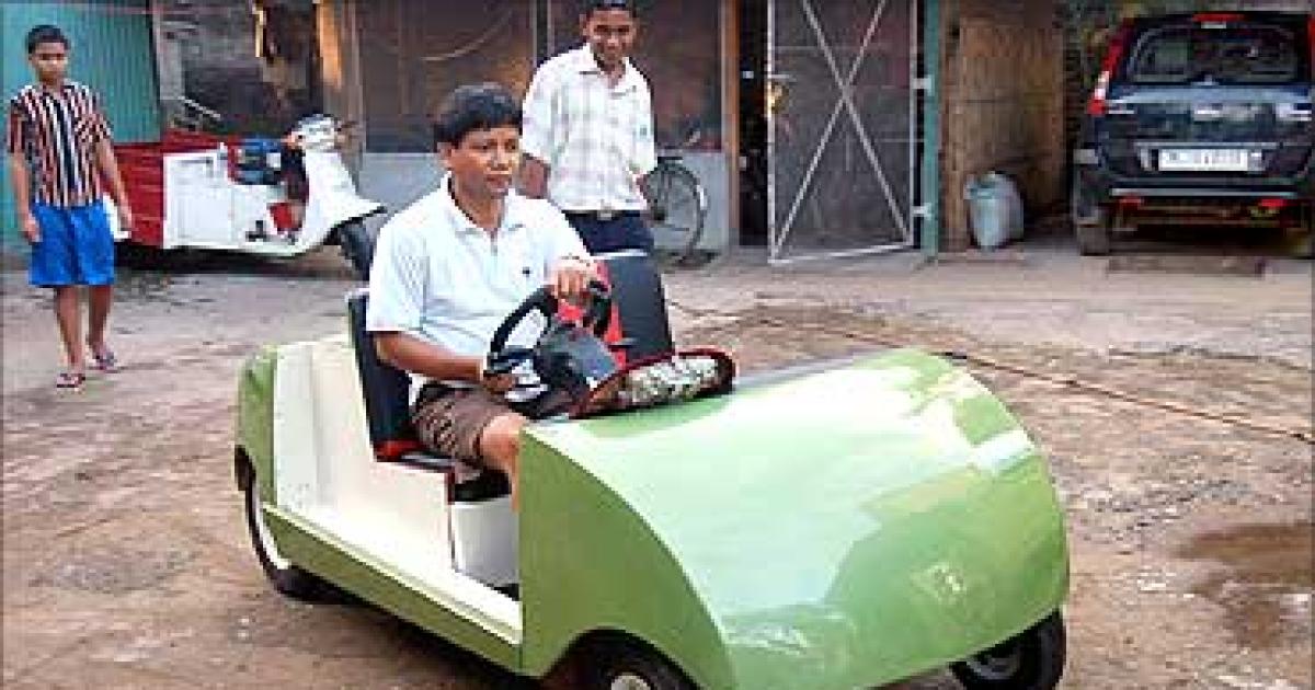 Image: Kanak Gogoi in a car that runs on compressed air. His other innovations include a flying car, a hybrid car, etc. Photograph: Courtesy, NIF